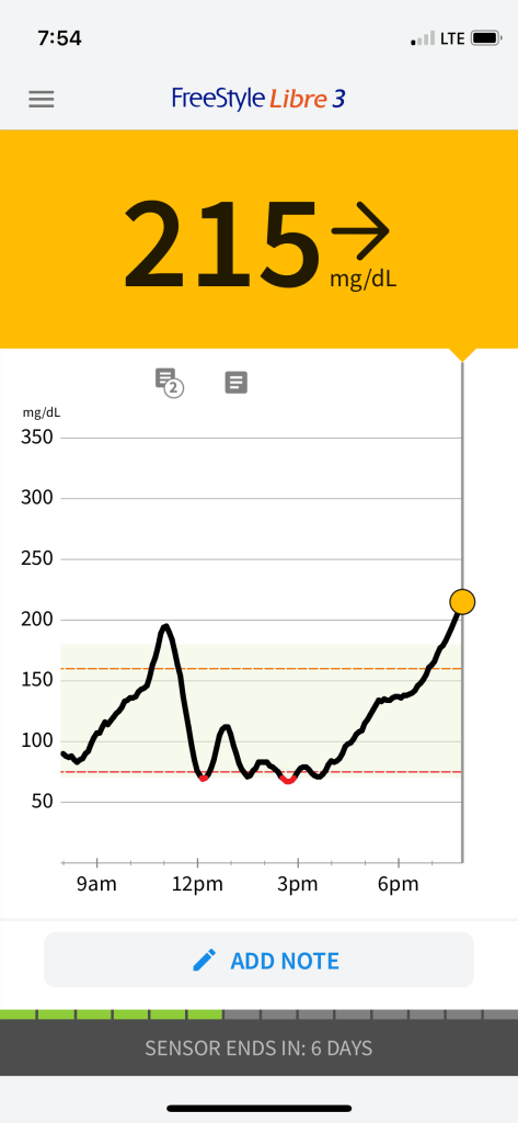 I take 6 units of Tresiba in the morning and one unit before bed. The day of the shot, which I’d gotten at 2 pm, I saw my blood sugar rising around 6 pm. I took extra Humalog for the rise, but also took 3 units of Tresiba before bed. That’s the 50% extra.