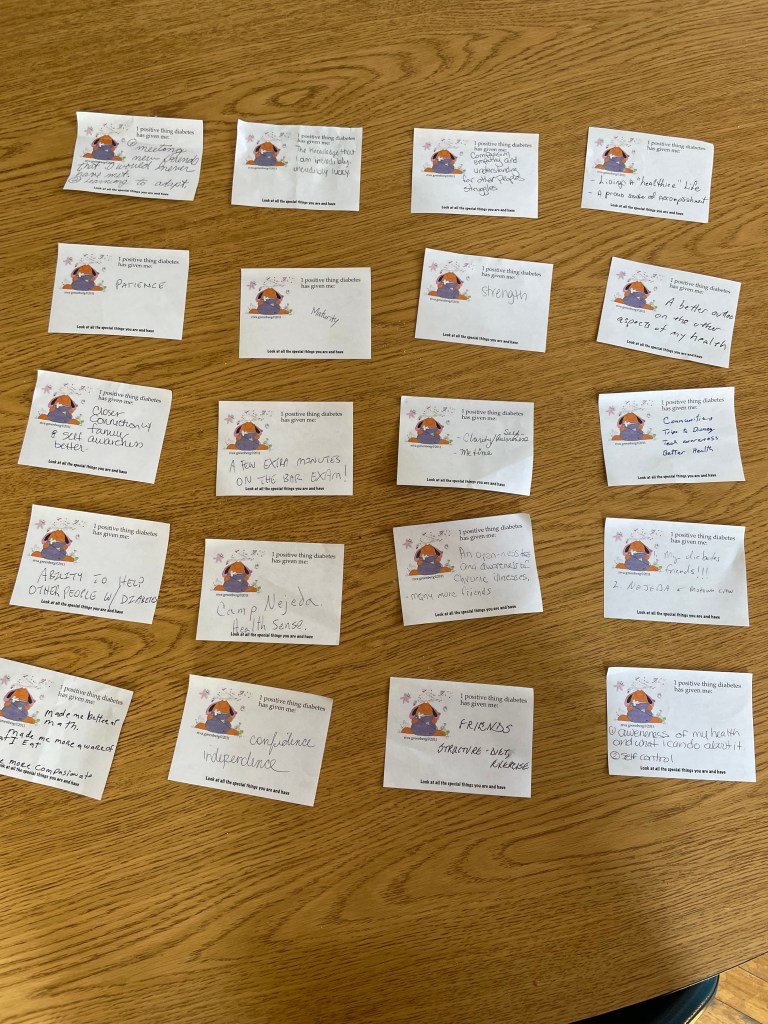 Having never gone to diabetes camp myself, diagnosed at 18 years old in 1972, I was invited to run a workshop on ‘Increasing diabetes happiness and advocacy’ this past weekend at Camp Nejeda’s Survive & Thrive weekend for adults with type 1 diabetes. Twenty 21 to 70 year old campers got to reflect on something they’ve gained having diabetes, discover their strengths and ponder the meaningfulness in their personal diabetes story.